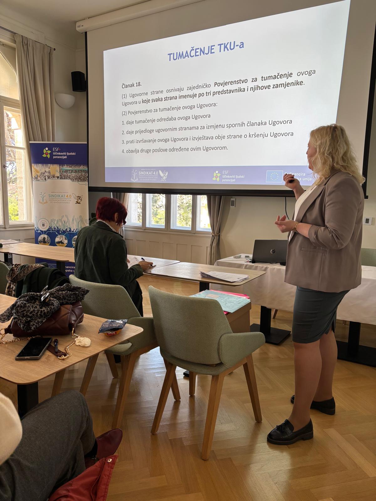 Osnove radnog prava, socijalnog dijaloga i granskog kolektivnog ugovora predstavila je Ana Hinić, voditeljica područnog ureda Split Sindikata hrvatskih učitelja.