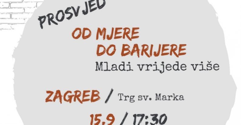 Pozivamo vas da se odazovete prosvjedu „Od mjere do barijere – Mladi vrijede više“ kojega u sklopu inicijative „Vrijedim više“ organizira Matica hrvatskih sindikata u partnerstvu sa Savezom samostalnih sindikata Hrvatske i Mrežom mladih Hrvatske.