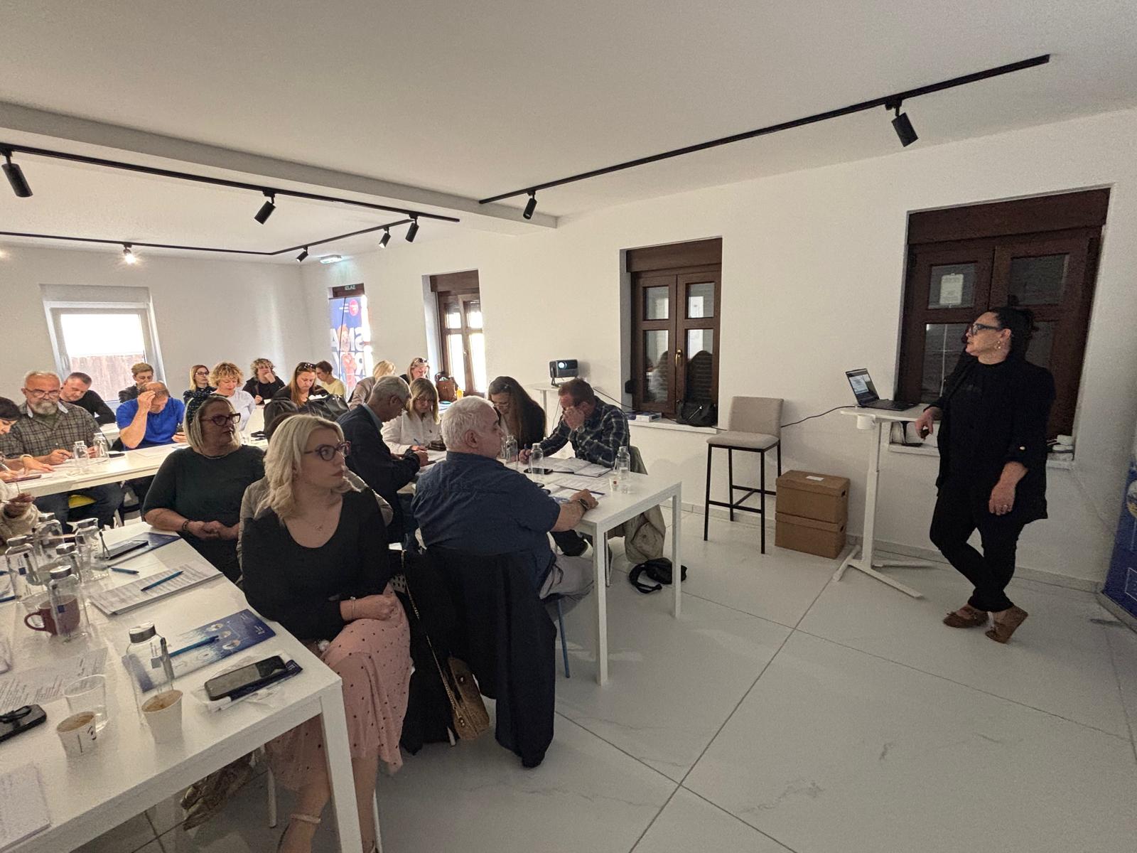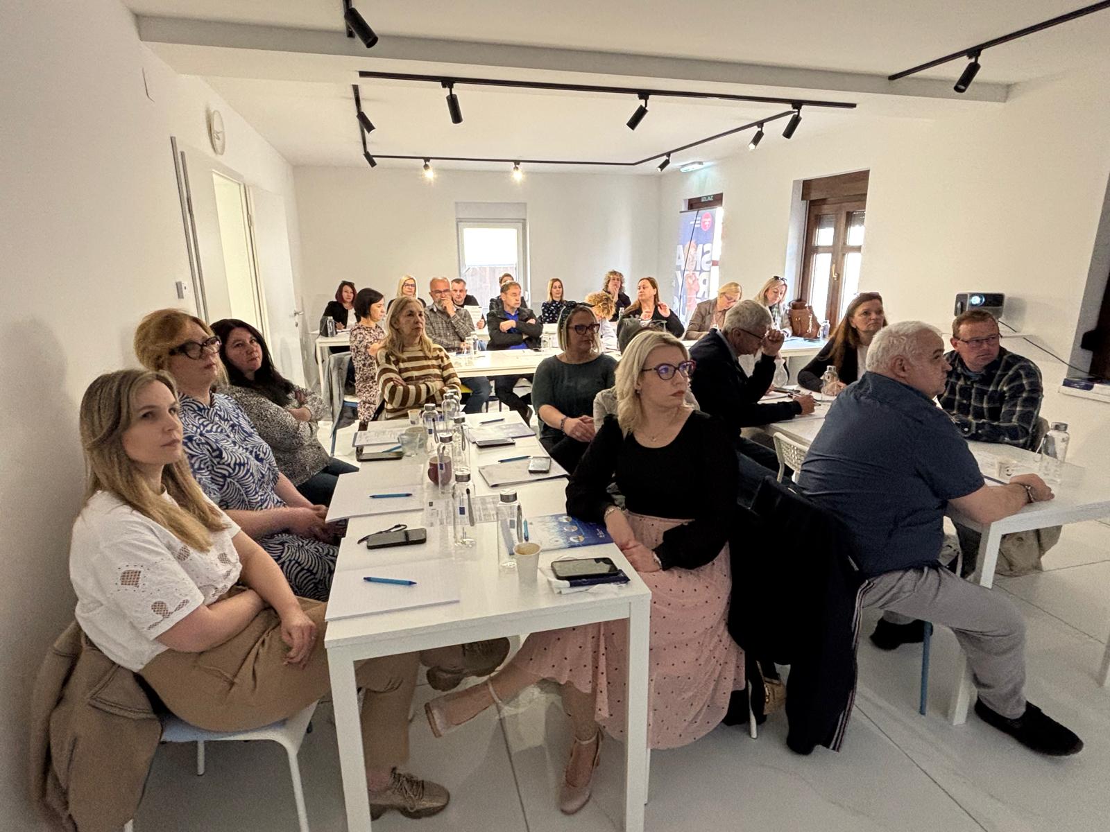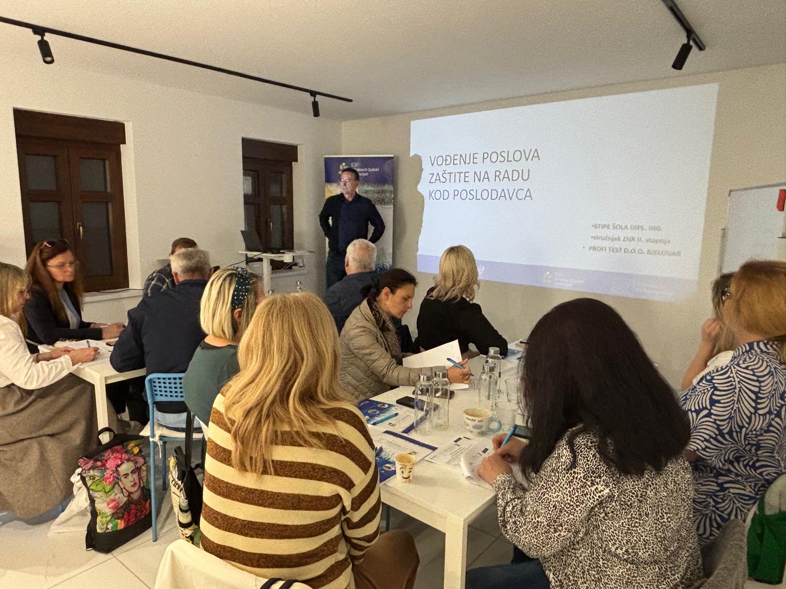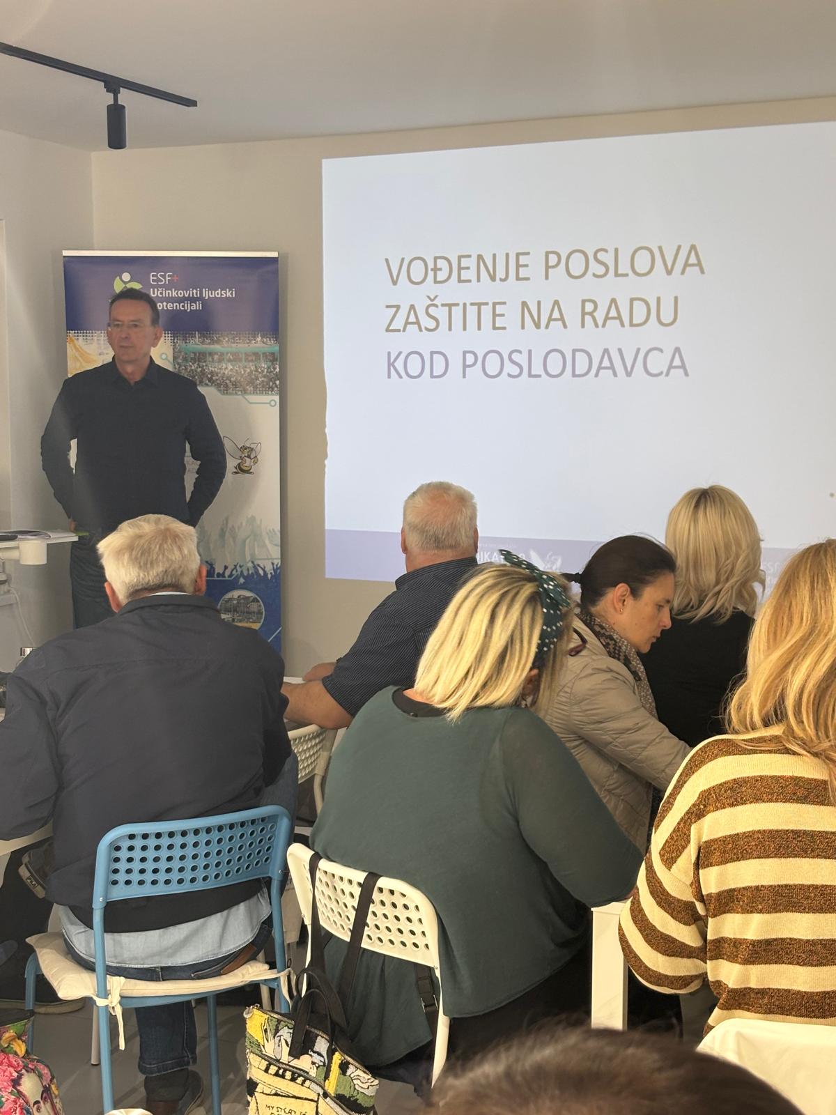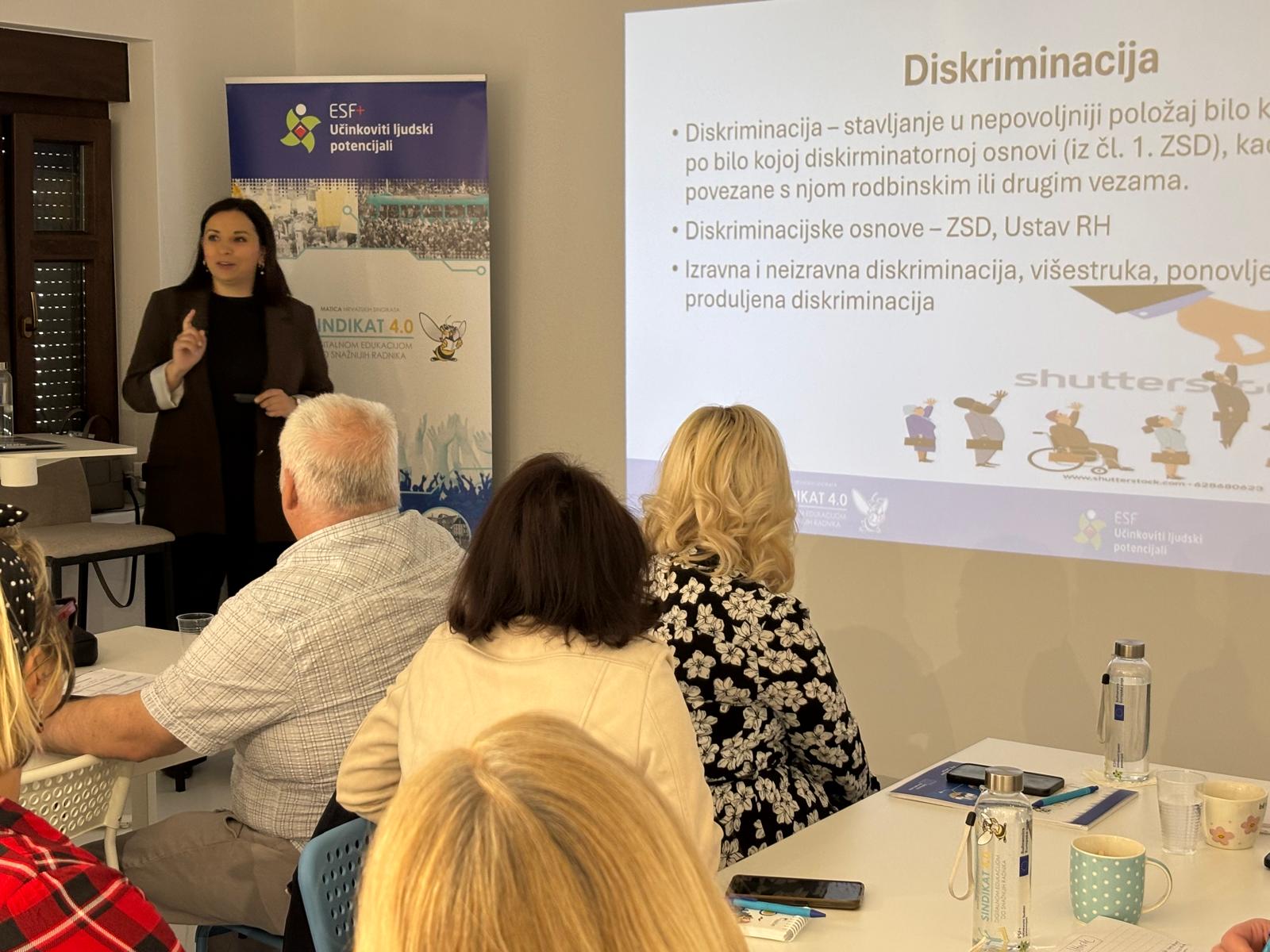 Prvi dan edukacije započeo je uvodnim predstavljanjem projekta koje je održala Ivana Šepak-Robić, viša stručna suradnica i voditeljica projekta. Nakon nje, Stipe Šola iz Centra za mirno rješavanje sporova „Medijator“ govorio je o važnosti zaštite na radu s posebnim naglaskom na ulogu sindikalnih povjerenika u osiguravanju sigurnih uvjeta rada i sudjelovanju u procjeni rizika na radnim mjestima.