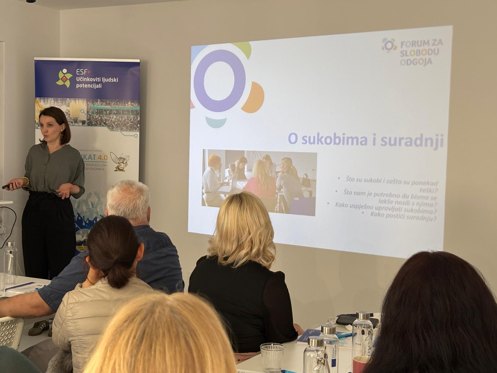 U poslijepodnevnom dijelu programa, Ana Šimić, socijalna radnica i trenerica medijacije iz Foruma za slobodu odgoja održala je radionicu o medijaciji. Kroz interaktivan rad sudionici su imali priliku razvijati komunikacijske vještine i upoznati tehnike mirnog rješavanja sukoba s naglaskom na konstruktivan i uključiv pristup komunikaciji.