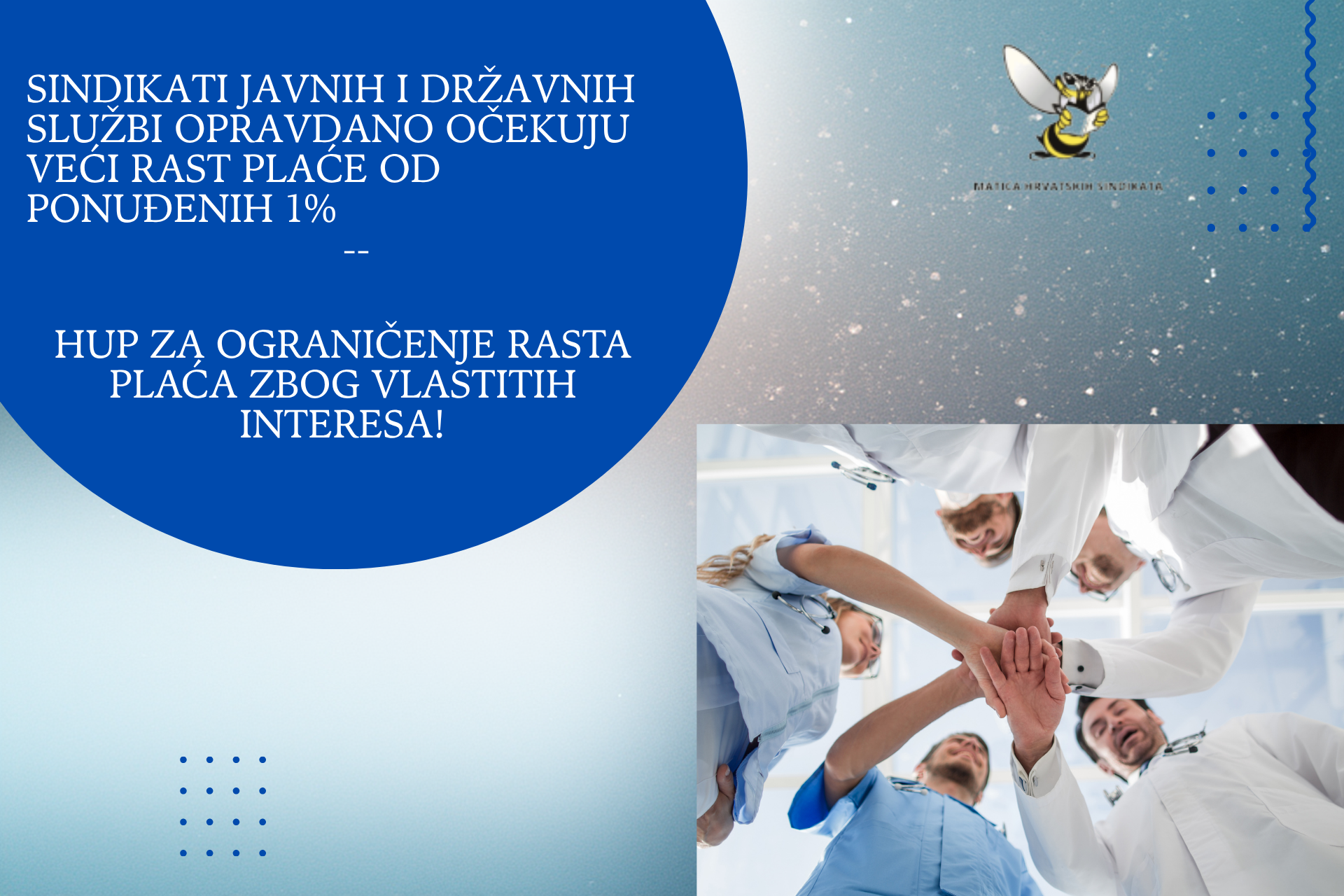 Sindikati javnih i državnih službi opravdano očekuju veći rast plaće od ponuđenih 1%