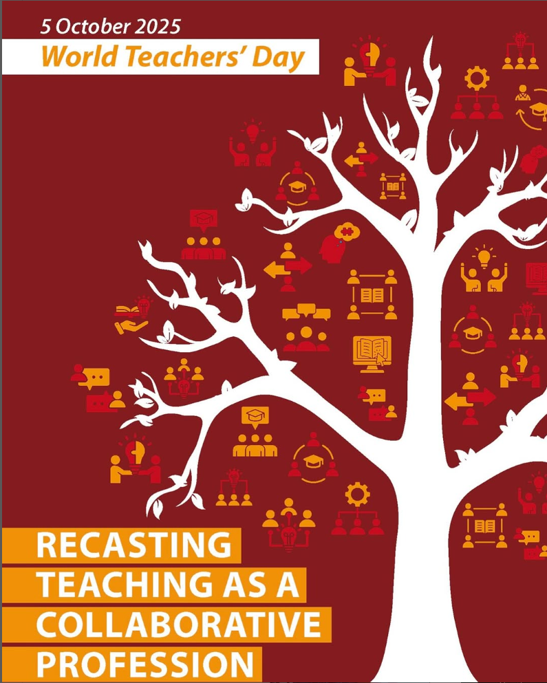 Ove godine, UNESCO-va proslava Svjetskog dana učitelja usredotočit će se na temu „Preoblikovanje poučavanja kao suradničke profesije“, ističući transformativni potencijal suradnje za učitelje, škole i obrazovne sustave. Preoblikovanje poučavanja kao inherentno suradničkog – podržanog politikama, praksama i okruženjima koja cijene međusobnu podršku, zajedničku stručnost i zajedničku odgovornost – ključno je za jačanje poučavanja, učenja i profesionalnog ispunjenja učitelja.