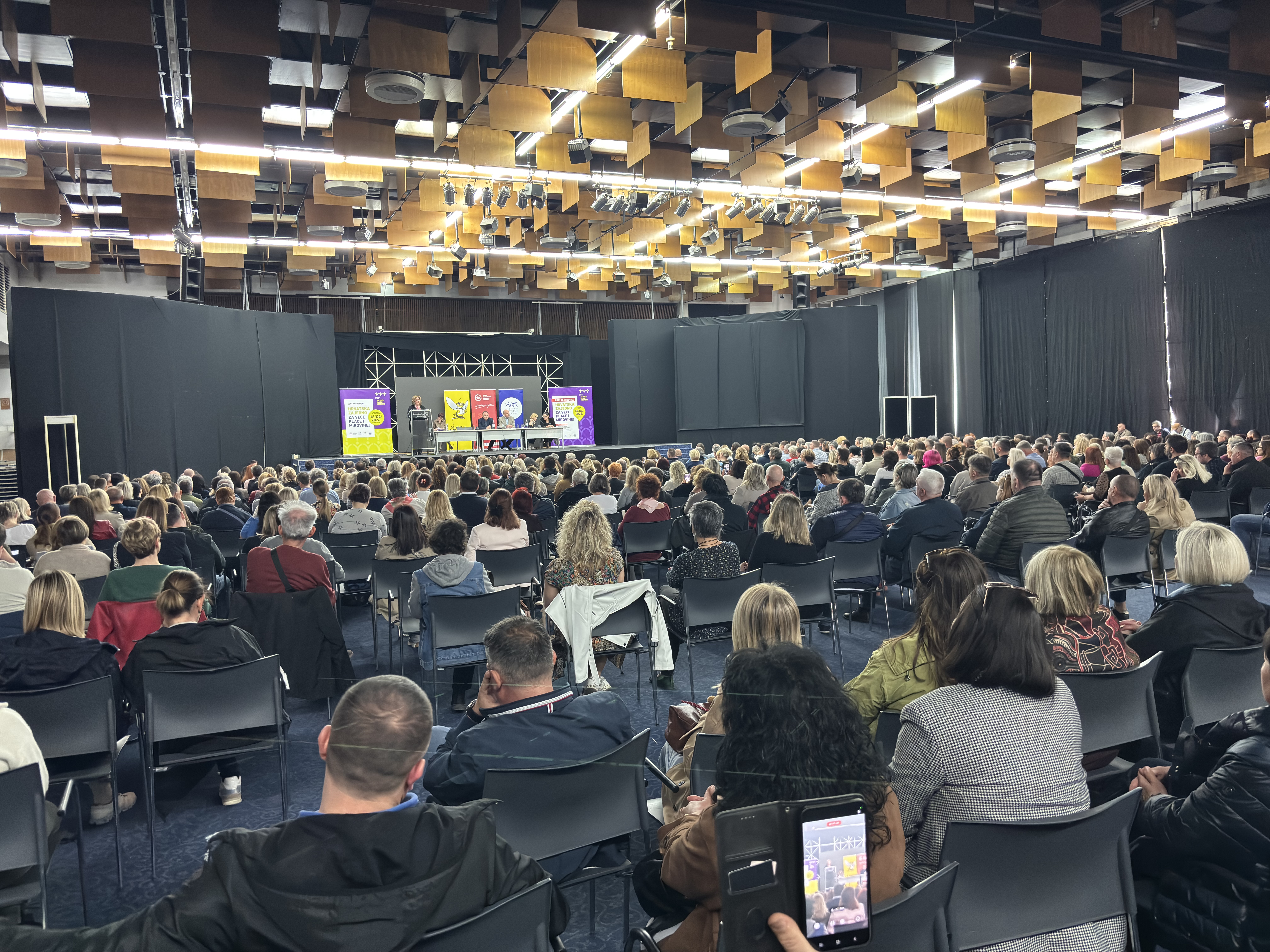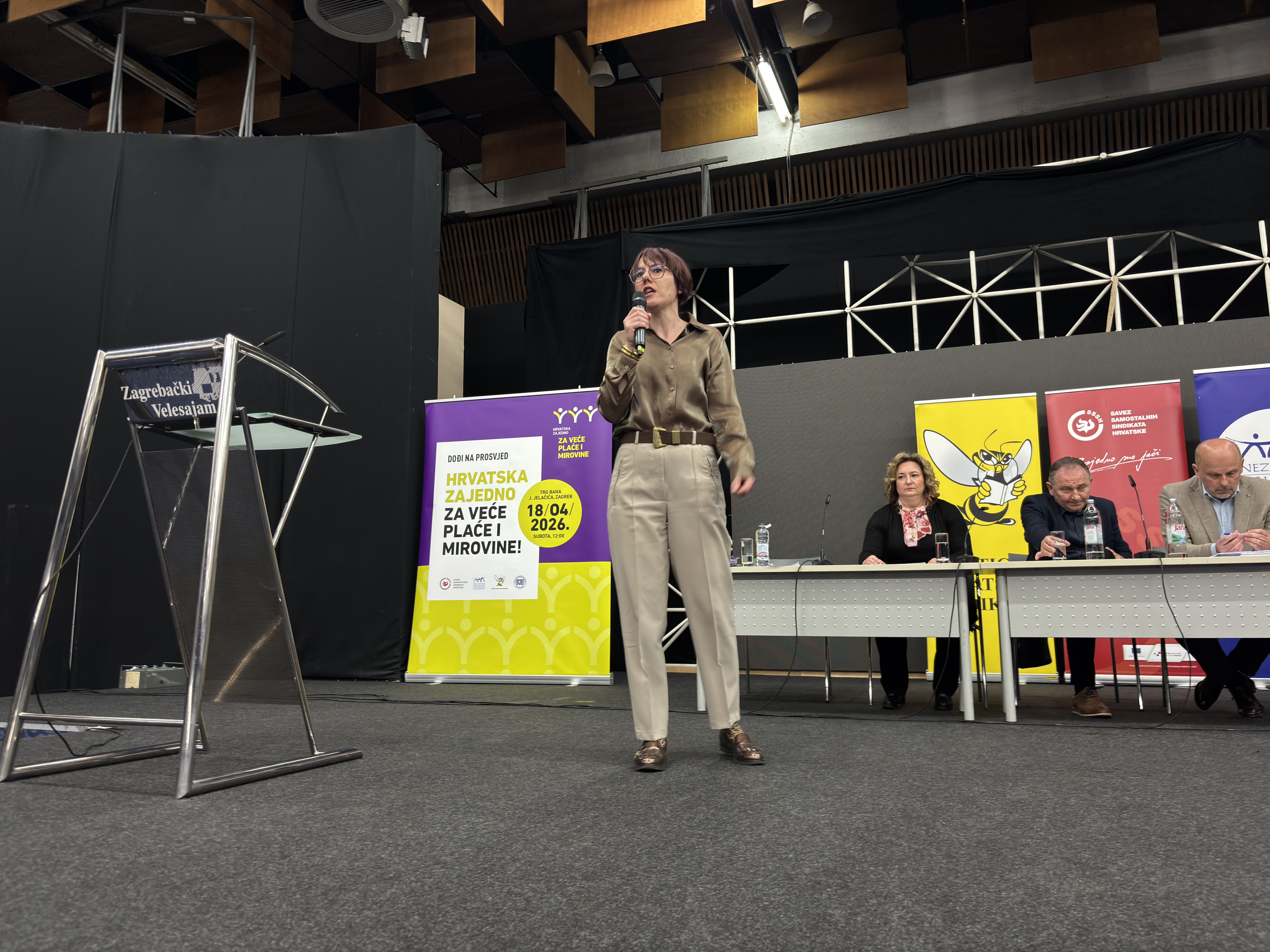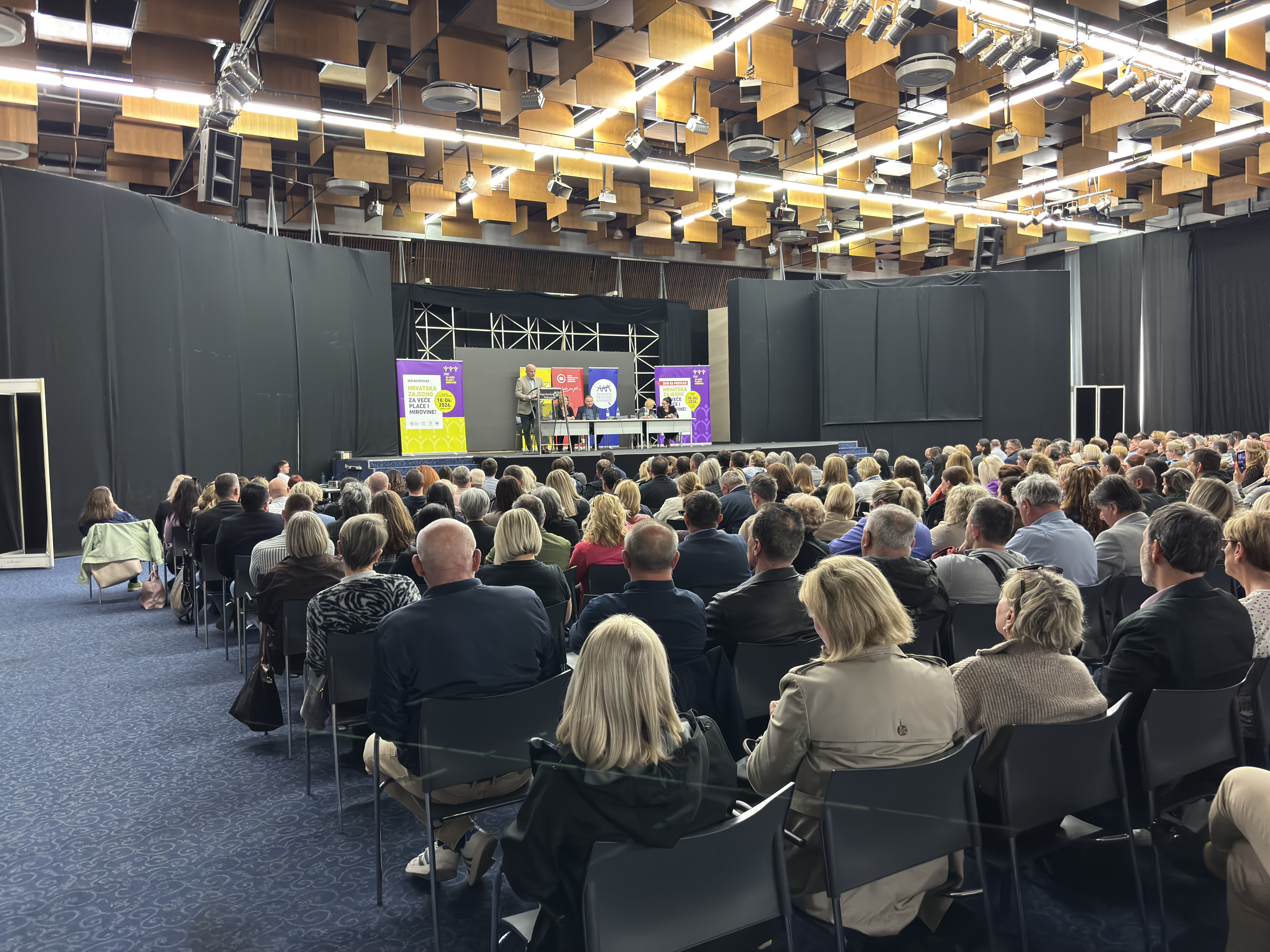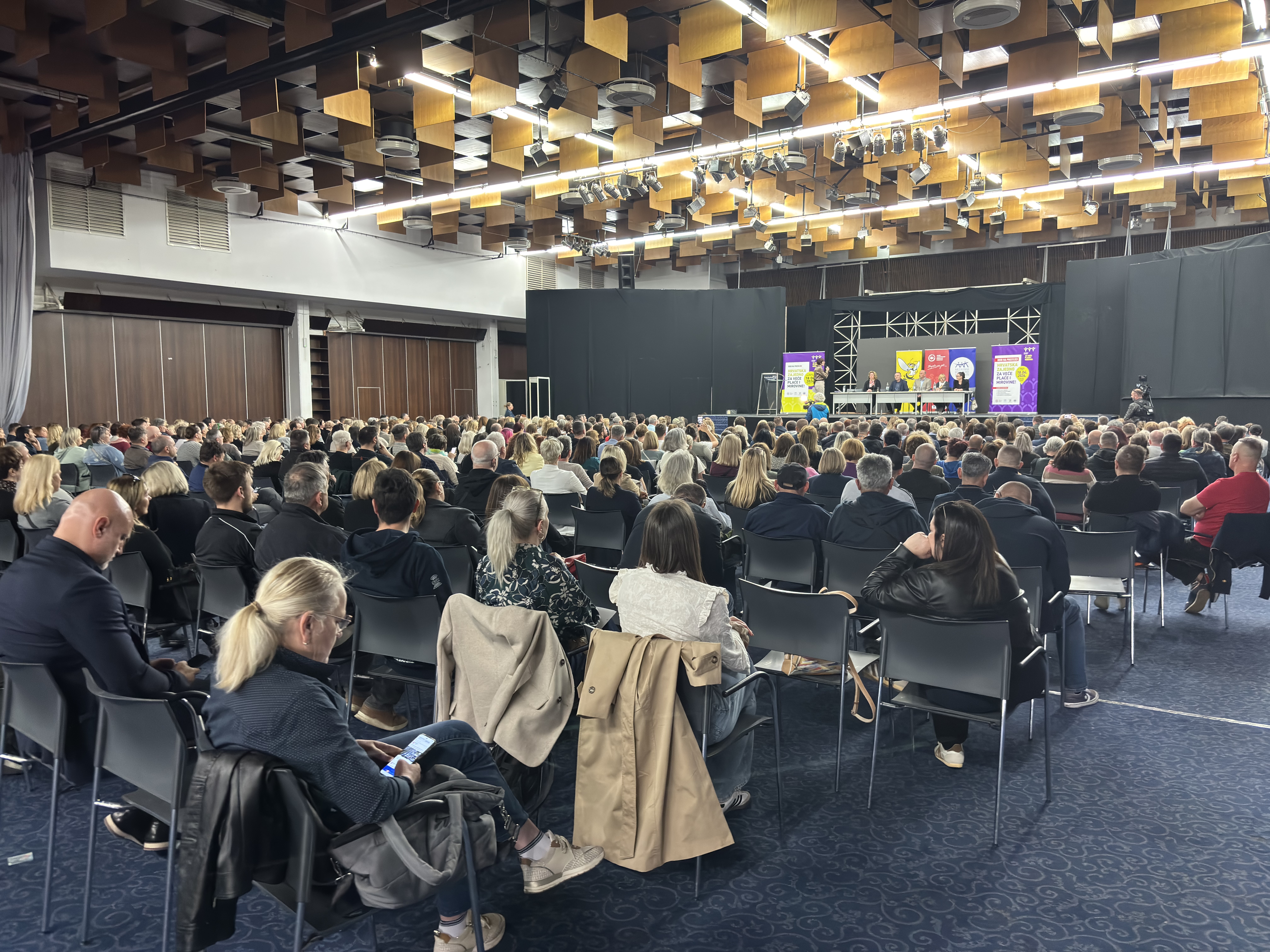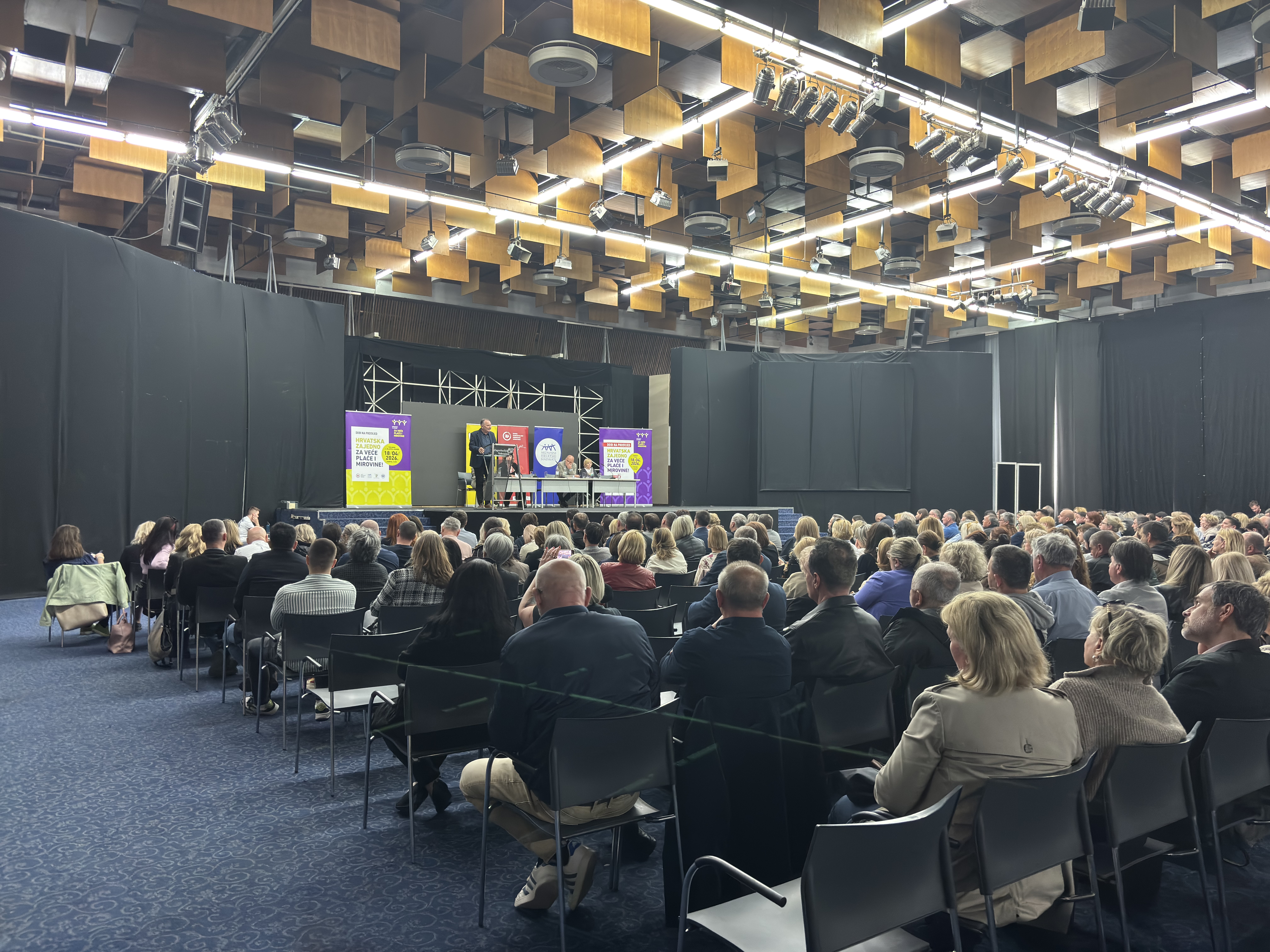 Posljednji pripremni skup uoči prosvjeda “Hrvatska zajedno za veće plaće i mirovine”, u organizaciji Matice hrvatskih sindikata, Nezavisnih hrvatskih sindikata, Saveza samostalnih sindikata Hrvatske i Sindikata umirovljenika Hrvatske, održan je u Zagrebu 9. travnja 2026. te je okupio više od 500 sindikalnih povjerenika.
