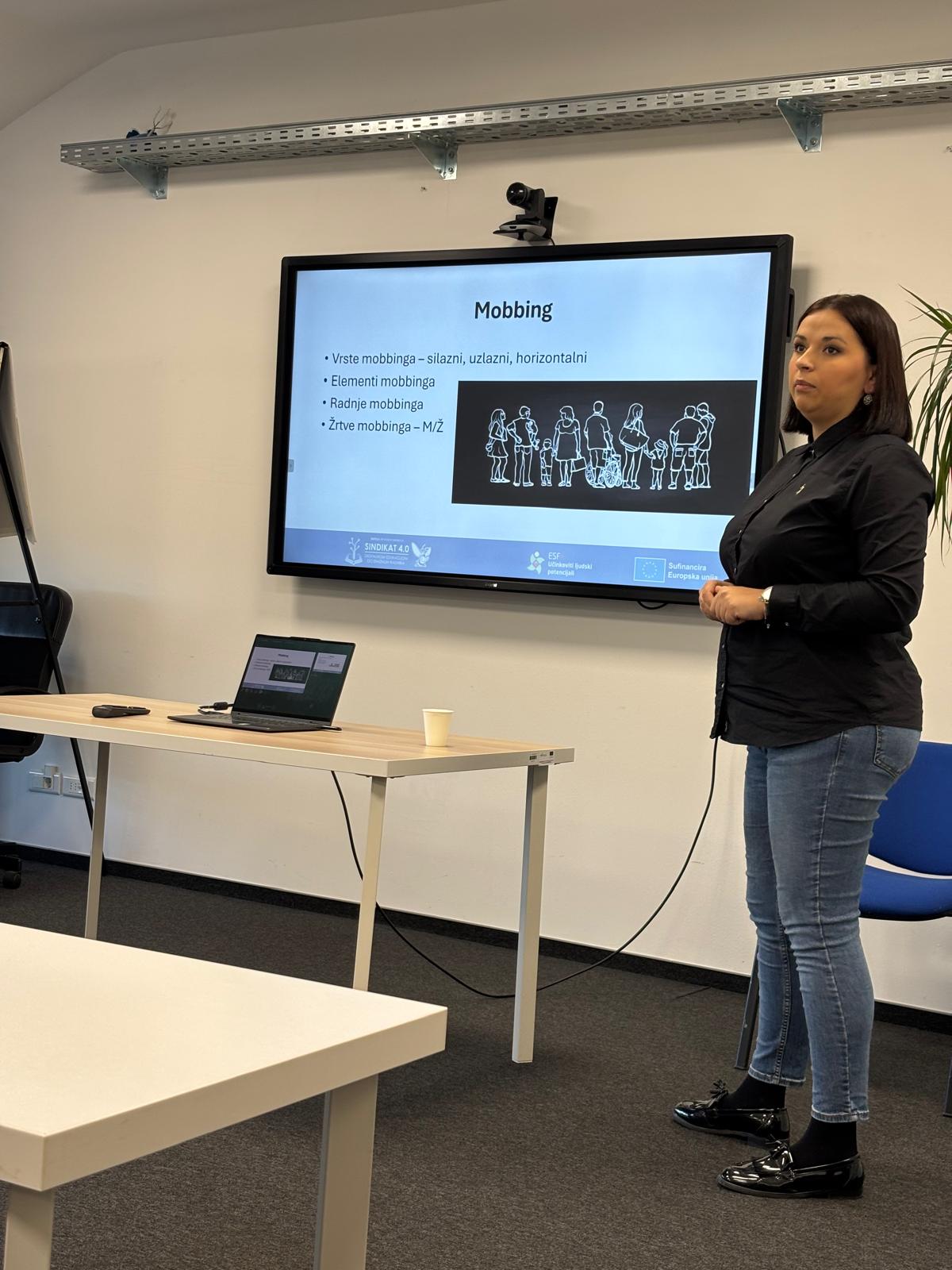 Prvi dan radionice prisutne je kao i uvijek pozdravila Ivana Šepak-Robić, voditeljica projekta i viša stručna suradnica pravnica Matice hrvatskih sindikata te opisala projekt i sve projektne aktivnosti koje nas čekaju u dvogodišnjem periodu provedbe projekta.