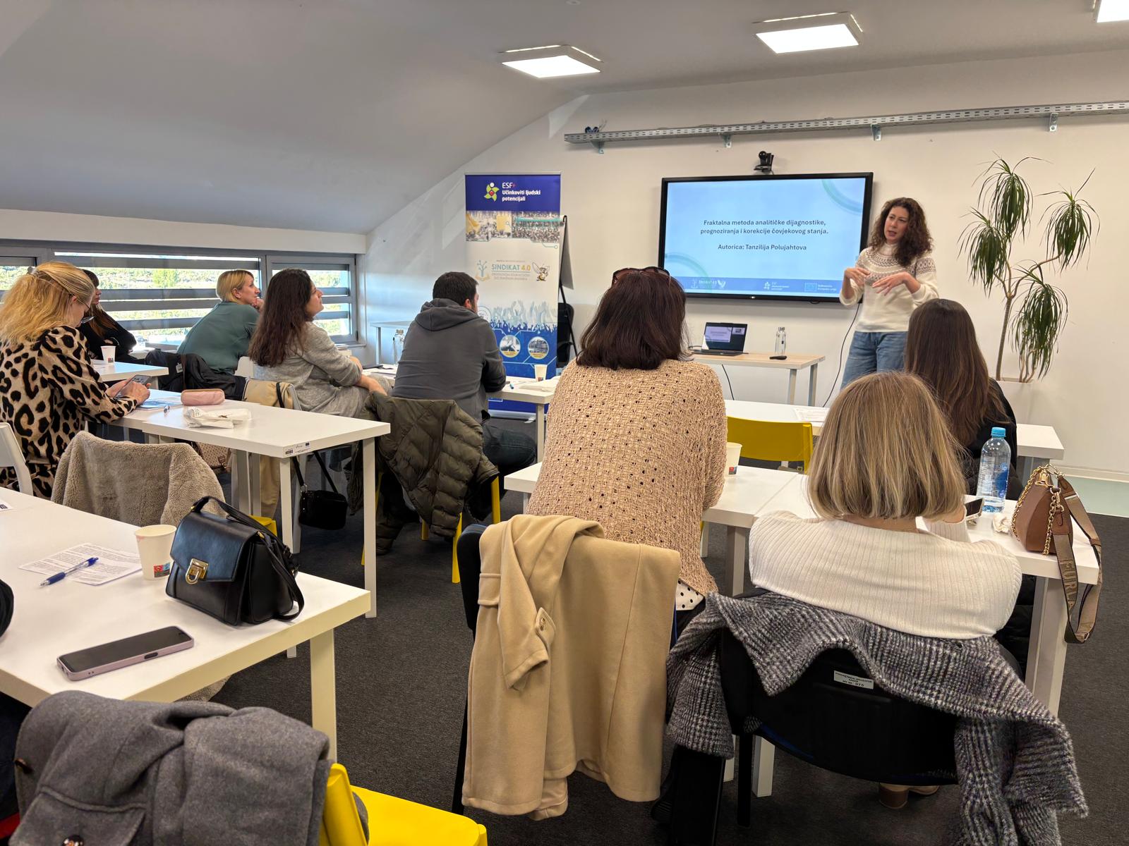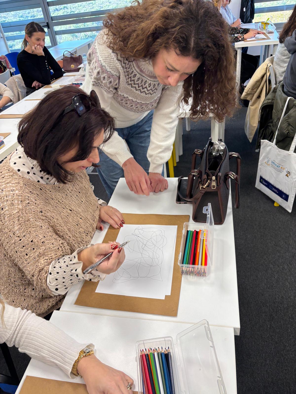 Nakon pauze za kavu i ručka radionicu je zatvorila Lorena Mareglia, socijalna pedagoginja i voditeljica radionica po metodi fraktalnog crteža te putem fraktalnog crtanja polaznicima demonstrirala kako sačuvati ravnotežu i snagu u svakodnevnom radu te povećati emocionalnu otpornost i spriječiti izgaranje na poslu – burnout.